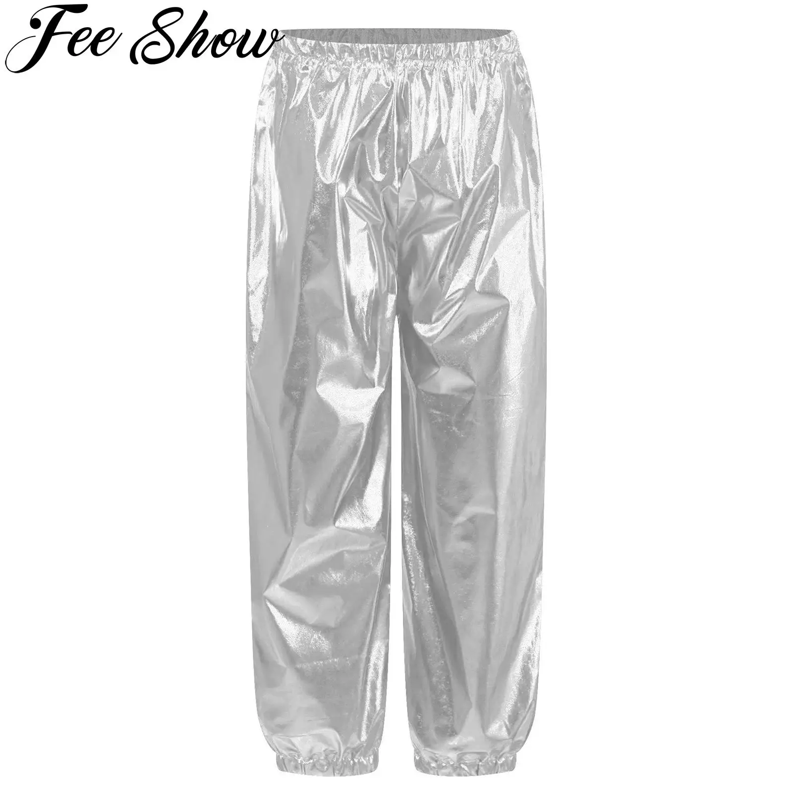 Kids Boys Girls Metallic Harem Pants Hip Hop Jazz Street Dance Performance Costumes Elastic Waistband Shiny Trousers Dancewear