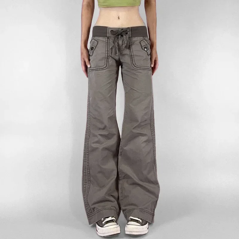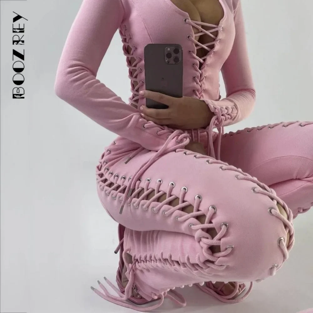 BoozRey Y2k Women Pants Streetwear Low Waist Pant 90s Vintage Clothes Skinny Slim Sexy Lace Up Hollow Out Straight Trousers