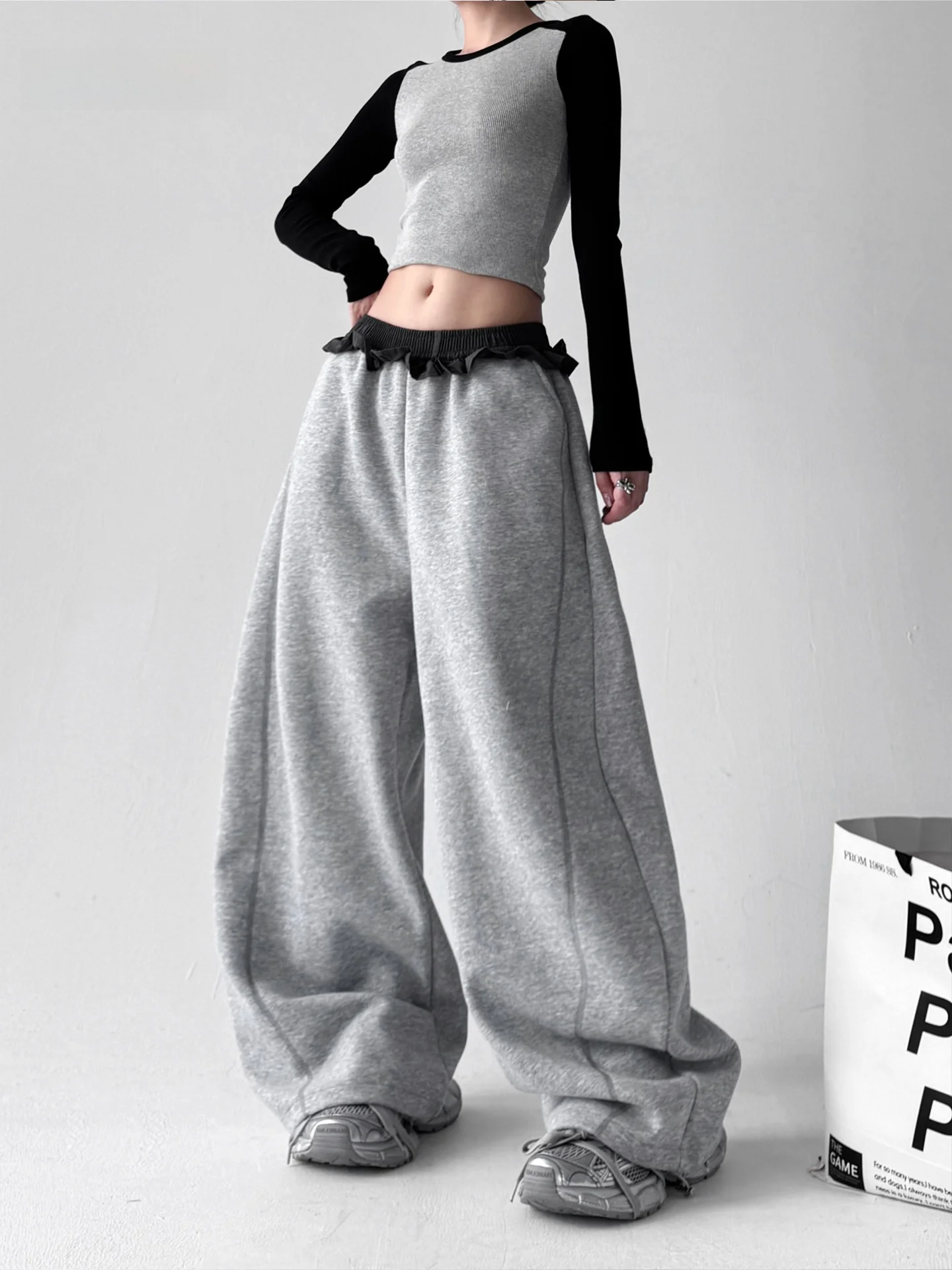 ay Sports Pants Women's 2025 Autumn Winter New Sle This Year's ular Lace Straight Leg Wide Leg Pants Korean Sle  Read more