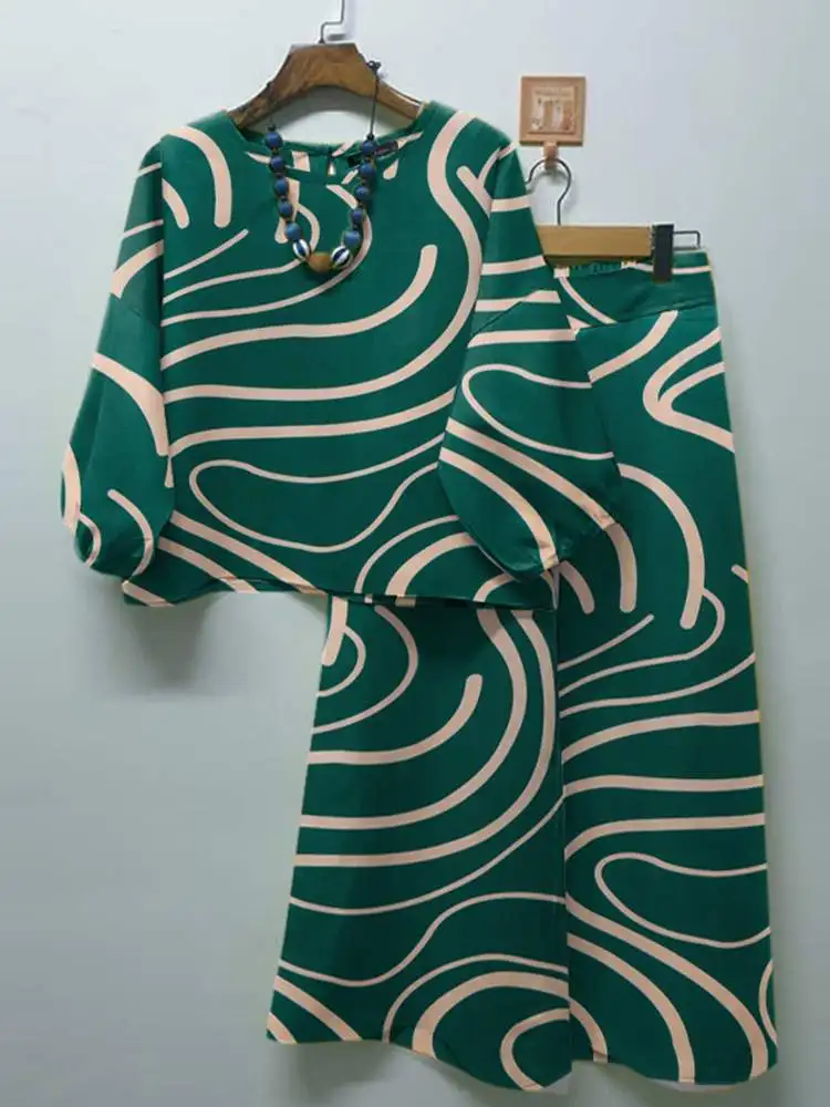 Elegant Women's Trousers Bohemian Style Classic Retro Floral Pattern Print Elastic High Waist Women's Wide Leg Pants