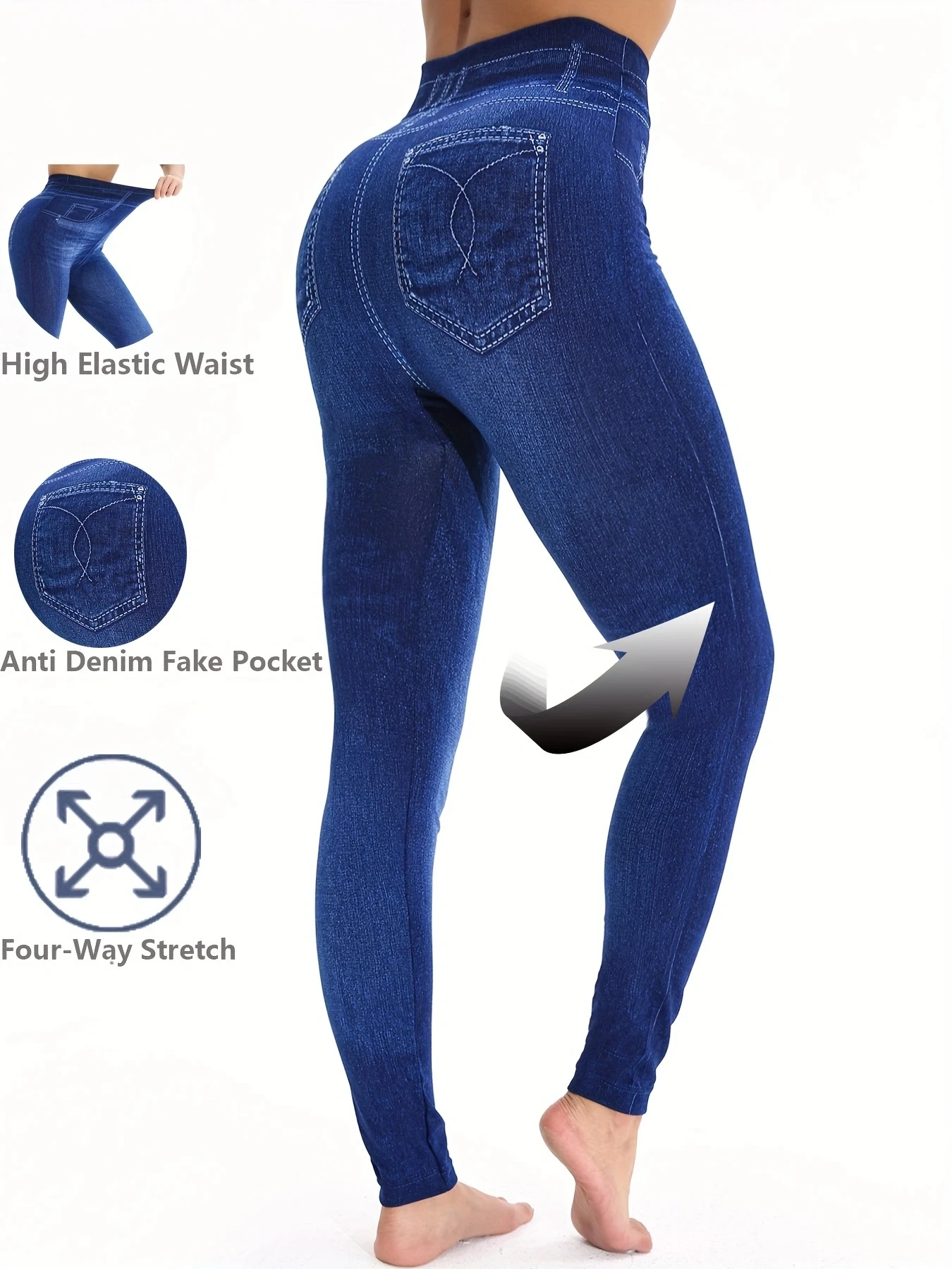 Flat Fashionable Tight Pants For Women Imitating Denim Legging Elastic Fitness And Yoga Pants Sexy Pencil Pants