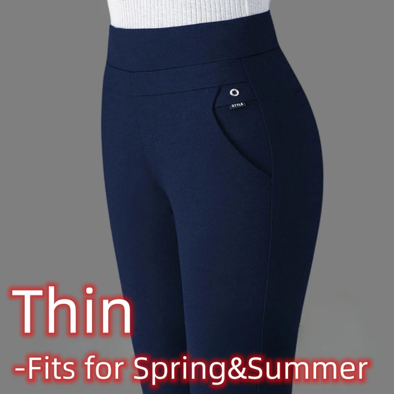 2025 Autumn Winter Casual Elegant Office Slimming Solid Color Fleecing Thick Thin Women's Pants Elastic Waist Tight Pencil Pants  Read more
