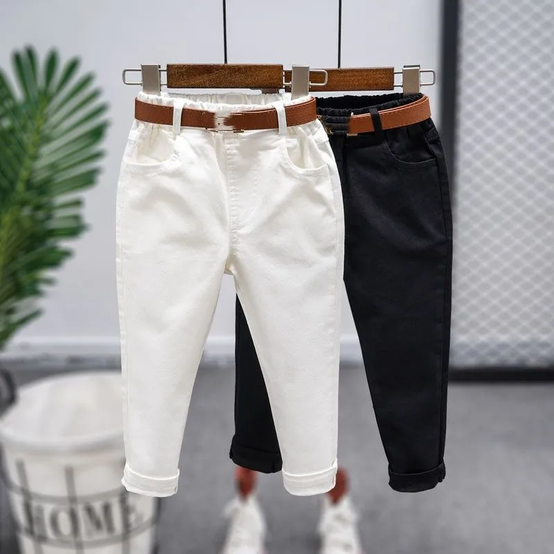 2025 Autumn Kids Pants Boys Pockets Design Denim Trousers Loose Style Baby Girls Jeans 1-6T Trendy Children Grinding White Pants