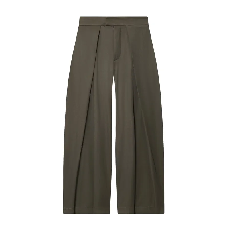 Women's Long Pants 2025 Autumn New Arrivals Military Green Pleated Loose Wide-Leg Pants Casual Fashion Stylish and Versatile