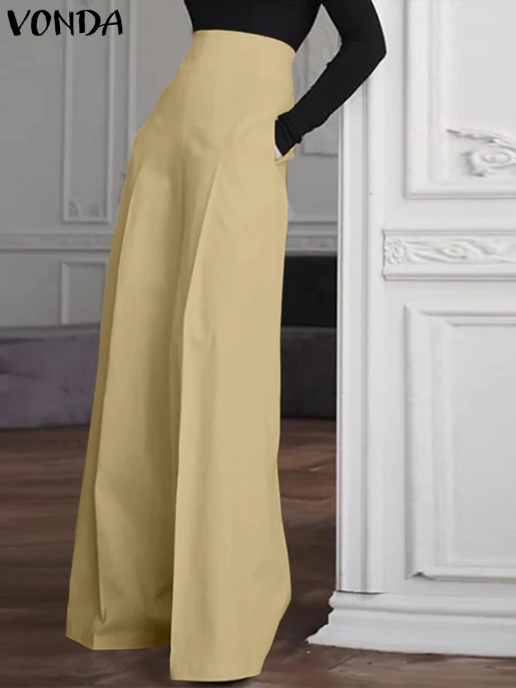 VONDA Women Wide Leg Pants 2024 Summer Elegant Office Trouser Fashion High Waist Zipper Casual Solid Pantalon Long Palazzo