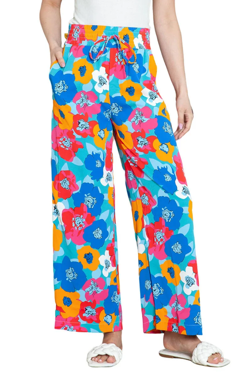 Pants - Floral Print - Wide-leg Pants |