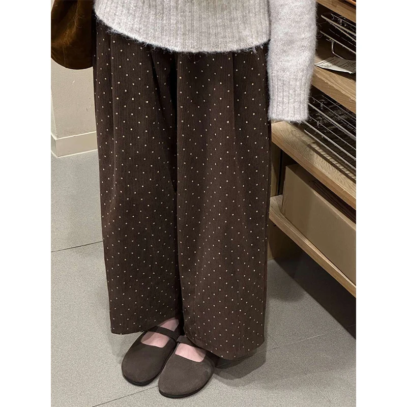 MEXZT Corduroy Wide Leg Pants Women Harajuku Streetwear Fleece Polka Dots Baggy Pants Winter Japanese Vintage Casual Trousers
