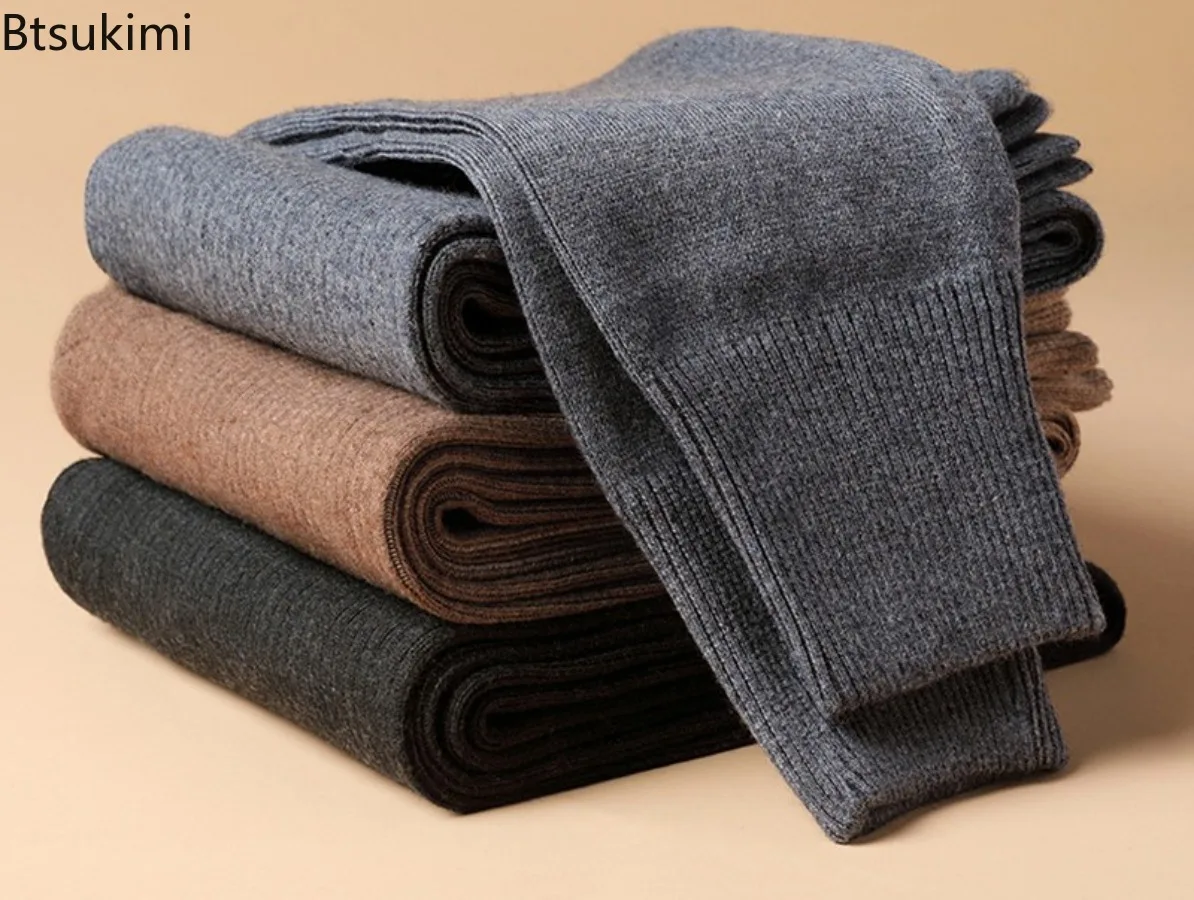 2025 Men Women Pure Wool Warm Thermal Underwear Thick Pants Mens Leggings Comfort Warm and Loose Plus Size High Waist Leggings