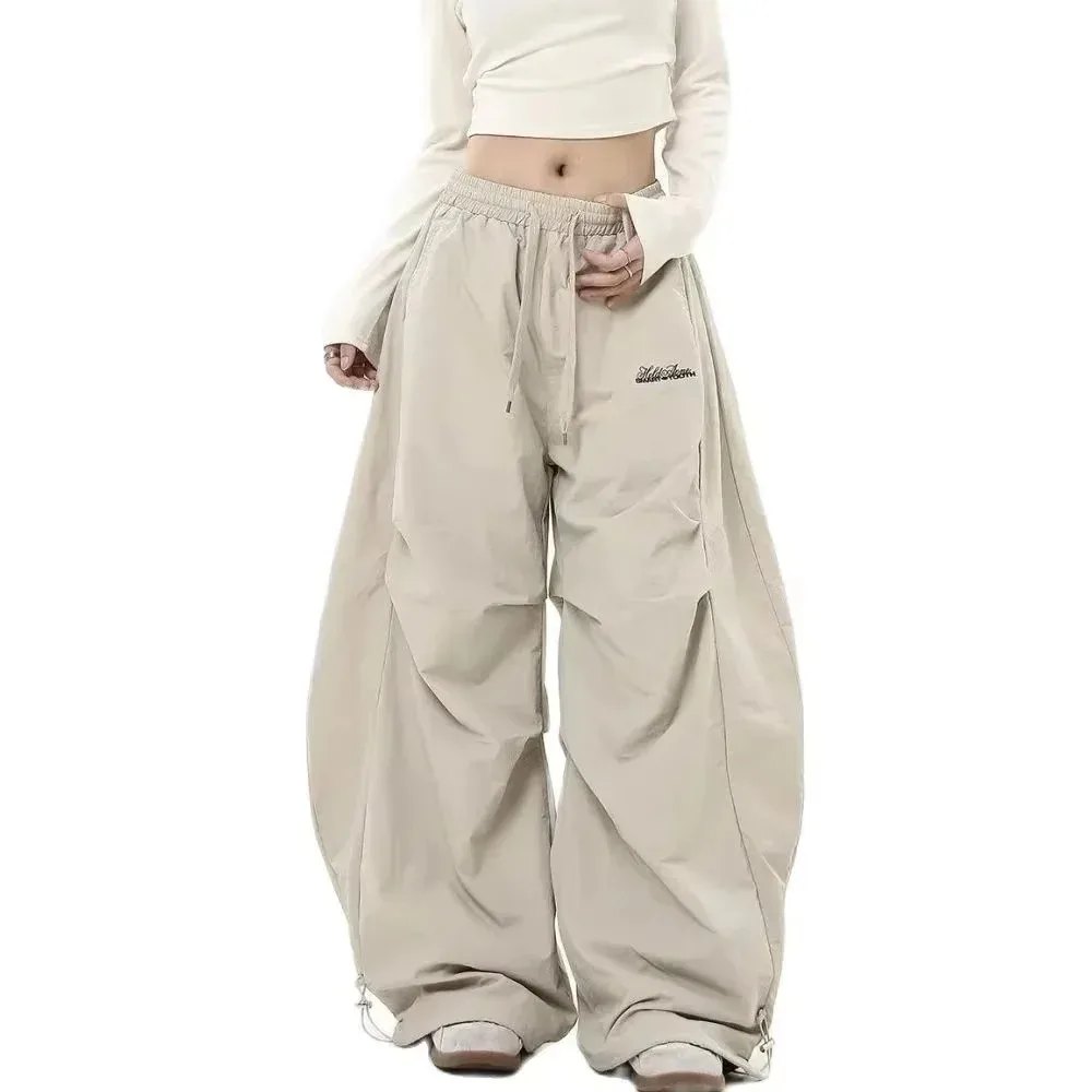 Retro Y2K Hip Hop Streetwear Casual Chic Matching Sweatpant Oversize Women's Wide Leg Pant Low Waist Drawstring Lady Cargo Pants