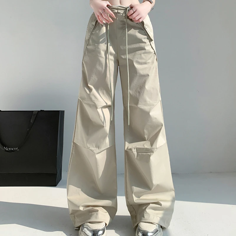 American Retro Women All Match Trousers High Street Casual Baggy High Waist Cargo Pants Female Spring Fall New Wide Leg Pants