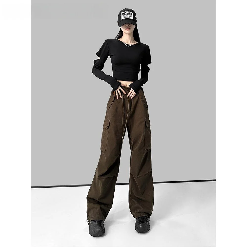 Female Cargo Pants Casual Thin Trousers Breathable Joggers Dancing Sweatpants Summer Autumn Drawstring Baggy Straight Trousers