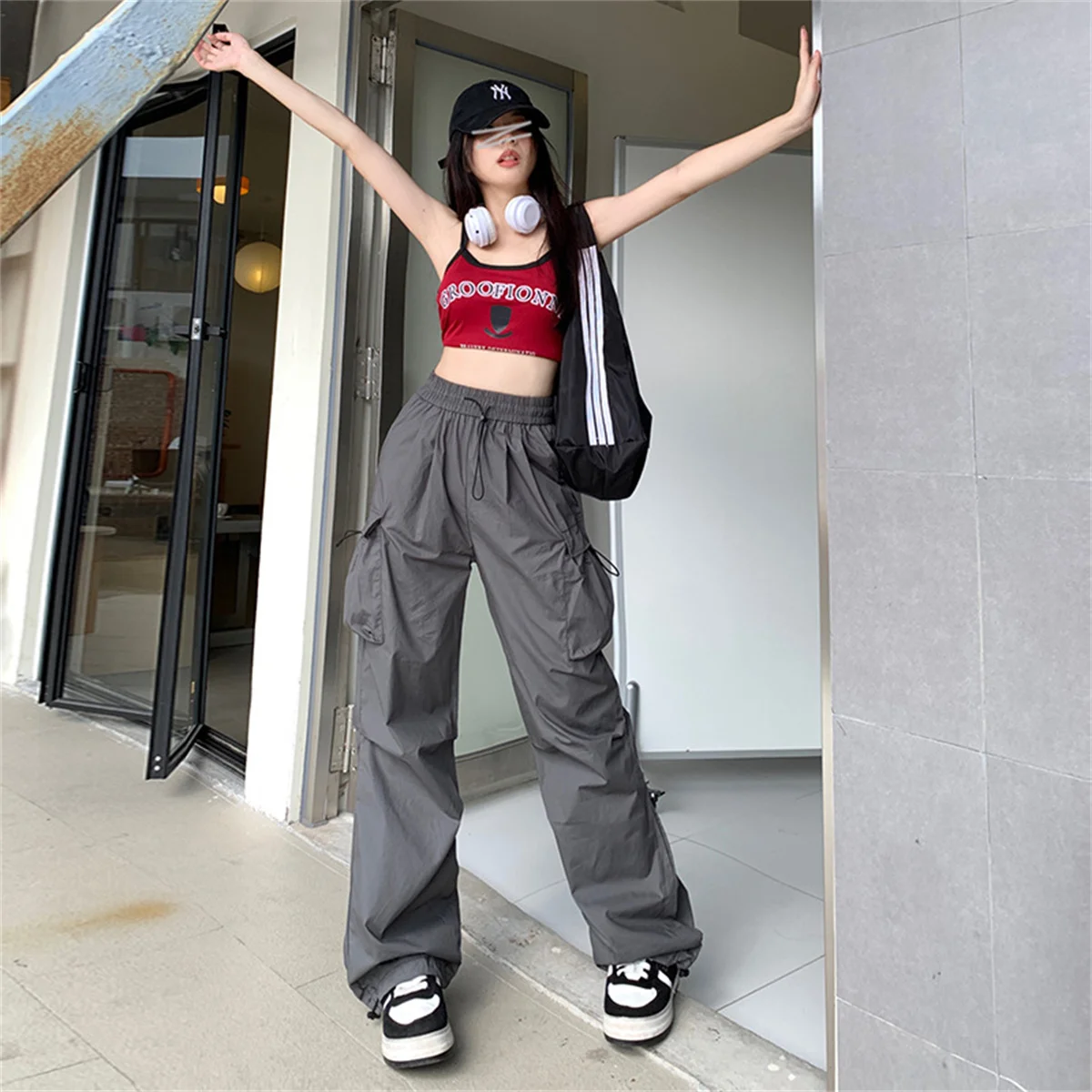 Women Cargo Pants Summer High Waist American Quick Dry Pants Y2K Baggy Hip Hop Casual Wide Leg Trousers Female Streetwear 2025