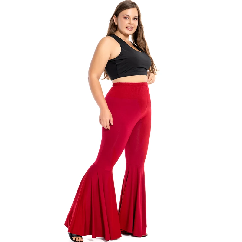 Babbytoro Women Flare Leggings Wide Leg Loose Bell Bottom Dance Party Modal Cotton Legin Pants Plus Size 5XL 4XL 3XL L Black Red