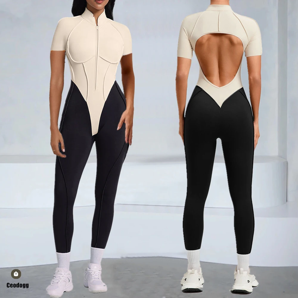 S-XL 2025 Nylon Zipper Long Sleeve Yoga Set Women One Piece Jumpsuit Fitness Gym Workout Pant Legging Running Romper Suit XP27  Read more