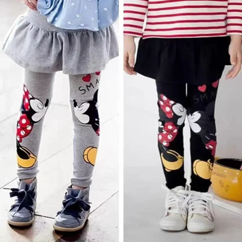 Disney Baby Girls Leggings Kids Lace Princess Skirt Pants Spring Autumn Children Cotton Trousers Cute Minnie Girl Leggings