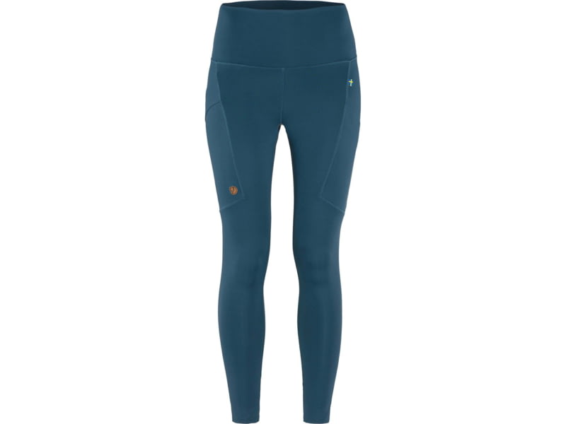 Fjallraven Abisko Tights - Women's Indigo Blue Small F84773-534-S. Created from a moisture wicking stretch fabric in recycled polyester they give a secure snug feel that is further emphasised by the high waistband. They have also positioned the...  Read more