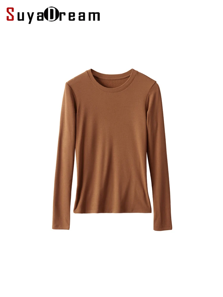 SuyaDream, Women Bottoming T Shirt, Silk Viscose Blend, Long Sleeves, Solid Basic Thermal Shirt, 2024 Autumn Winter Top