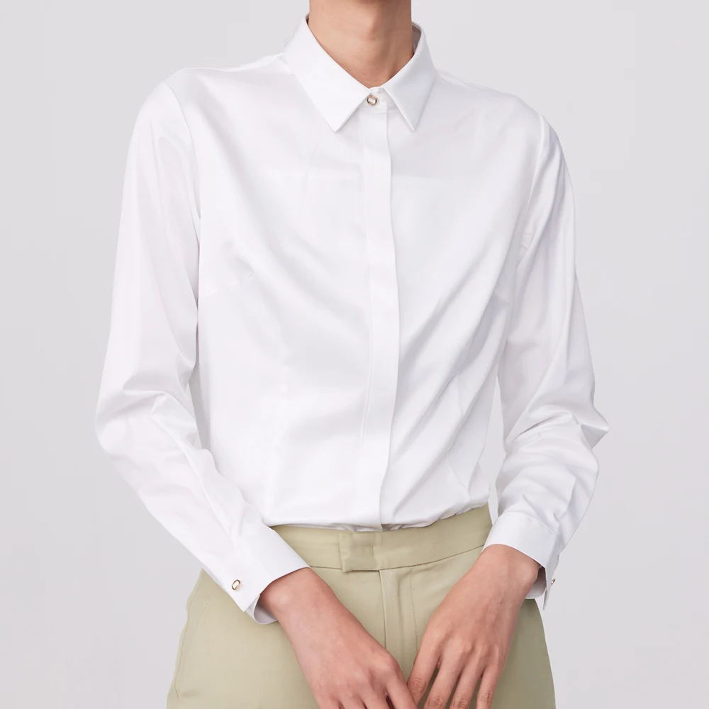 Women's Office Lady Non-iron Silk Touch Long Sleeve Shirt Without Pocket Hidden Buttons Placket Slim-fit Versatile Female Shirts