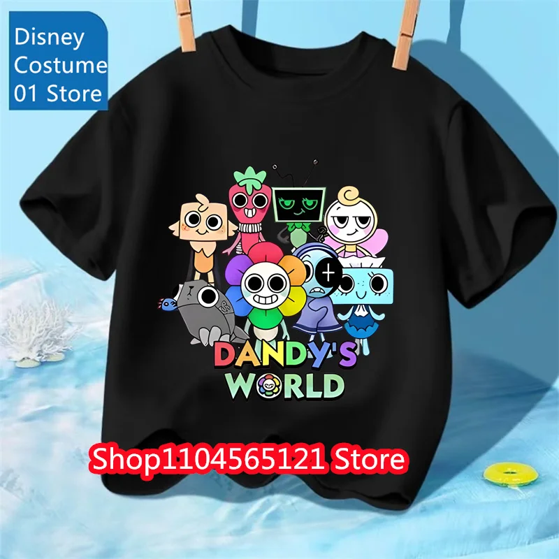 Game Dandy's World Kids Anime Cotton T-shirt Boy Girl Short Sleeve Top Children Cartoon Cute Tee Summer Casual Clothes Gift 2024