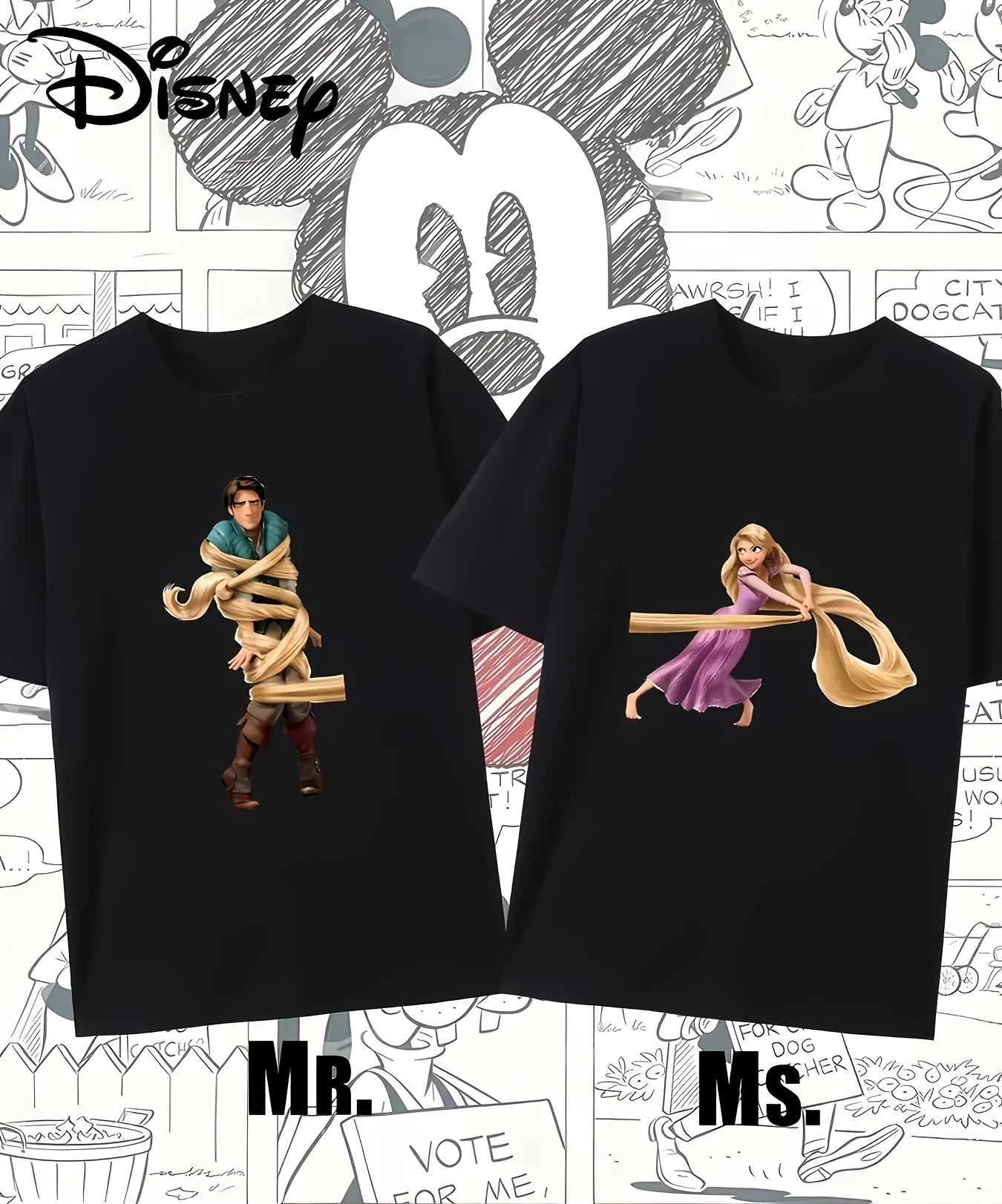 Disney Couple Unisex Flynn Rider & Rapunzel T-Shirt Love Summer Cotton Men Women Tops Tee Streetwear Oversized Clothing Vacation  Read more