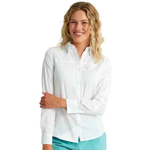 Huk Women's Tide Point Long Sleeve Fishing Shirt - Designed to work seamlessly in and out of the boat, the Tide Point ensures lasting comfort for a host of water-related activities. 30+ UPF rating Quick drying Interior glasses wipe Two-way stretch...