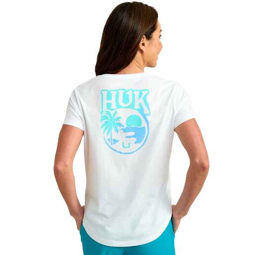Huk Women's Sunset Graphic Short-Sleeve Casual Shirt - Elevate weekends on and of the water with the new Womens V-Neck Sunset Graphic Tee featuring a v-neckline, and new graphic print. V-neckline Sunset graphic on the back 50/50 cotton poly blend...