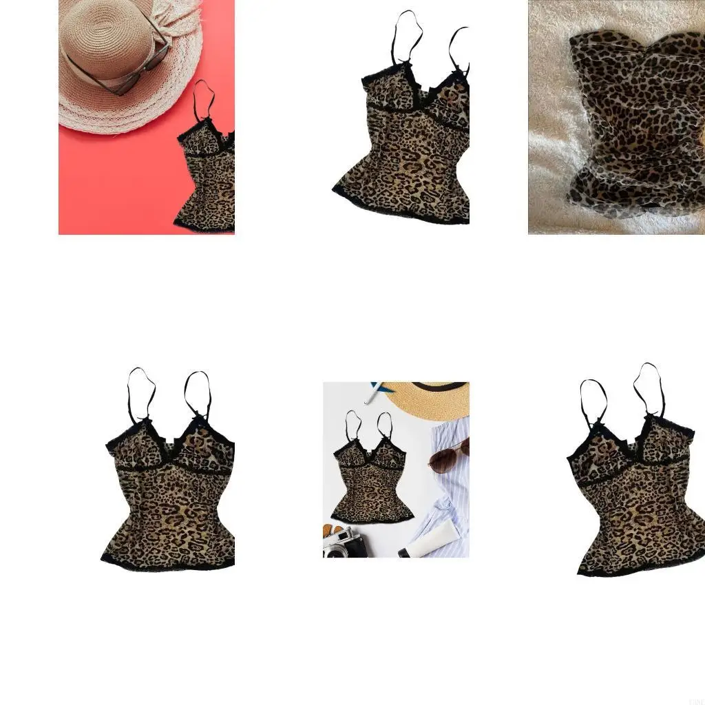 Y3NE Casual Leopard Pattern Lace Trim Bustier Crop Top Women Sleeveless Shirt  Read more