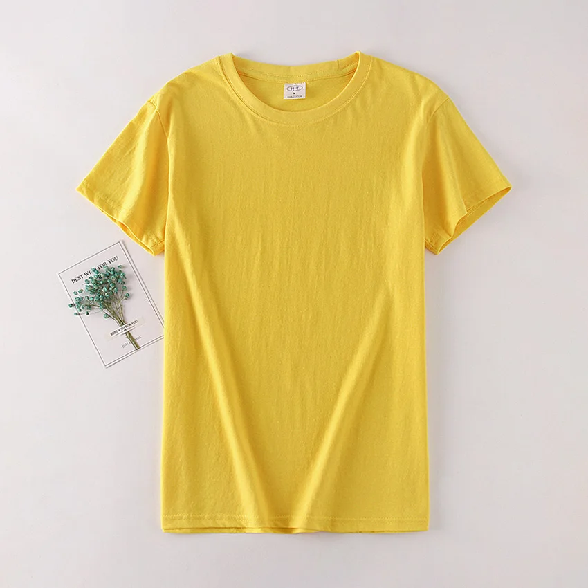 Zuolunouba Summer Tees Loose Casual Cotton 100% Women T-shirt Yellow Harajuku Solid Color Tops Female Short Sleeve