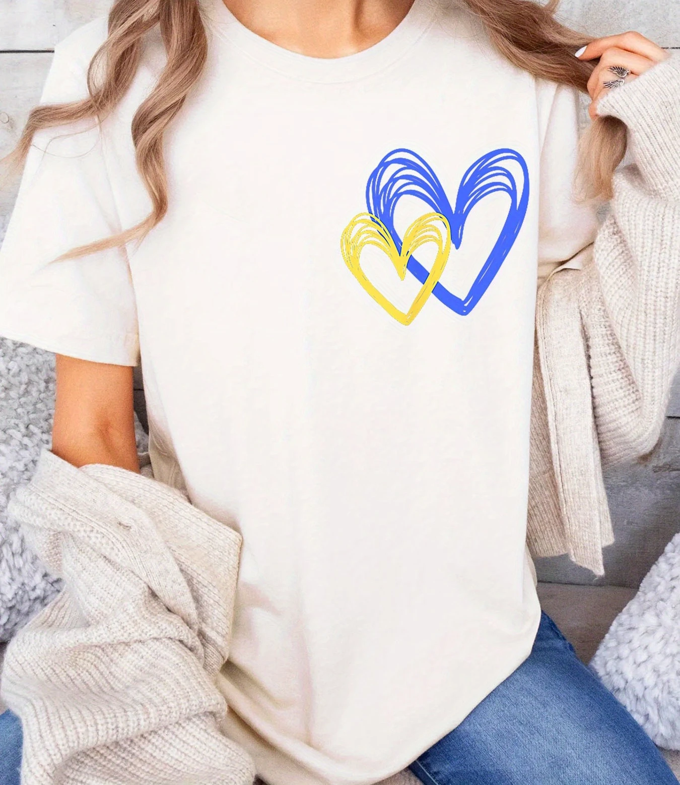 Women's Ukrainian Love Heart Print TShirt with Yellow Blue Hearts Short Sleeve Crew Neck Casual Top Summer Comfortable Fit Shirt