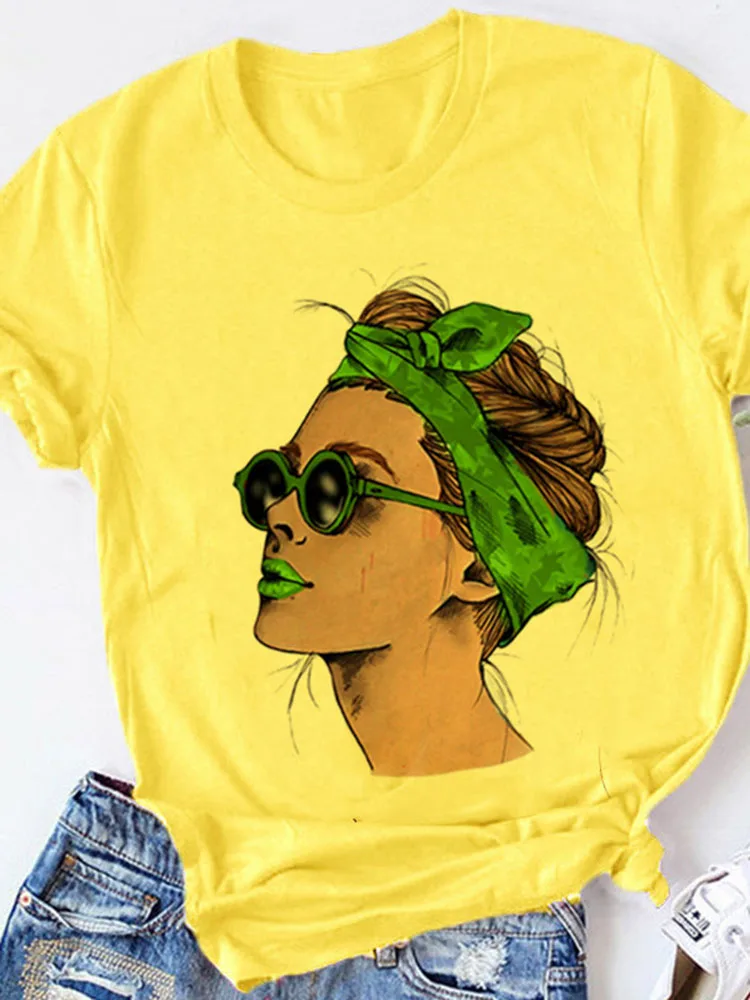 Yellow T-shirt Women Summer Print Lady Casual T Shirt Tops Harajuku Streetwear Short Sleeve Tshirt, Drop Ship