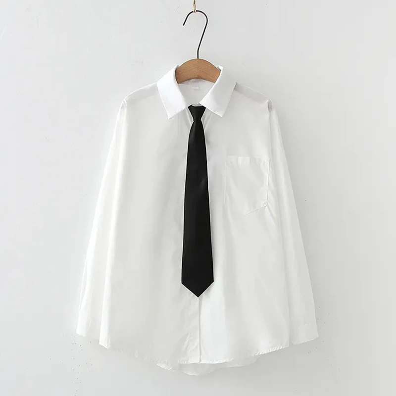 GIDYQ Women White Jk Shirts Long Sleeve Fall Student Shirts Casual Button Up Japan Black Tie Preppy Style Girls Tops New