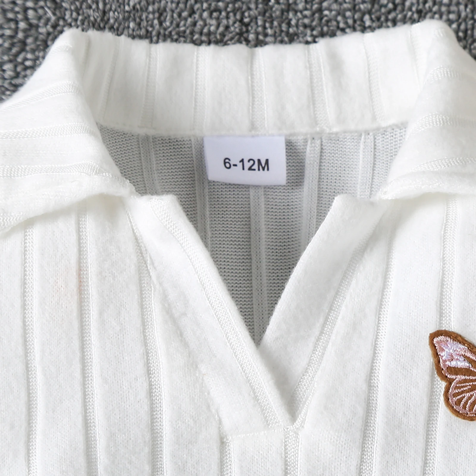 1-5Y Girl Fall Winter Outfit Butterfly Embroidery Long Sleeve Lapel Sweatshirt with Pleated A Line Skirt with Belt