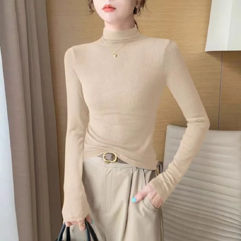 2025 New Autumn Winter Velvet Undershirt Long Sleeve T-shirt Blouses Female Warm Half Turtleneck Velvet tShirt Women Velvet Top