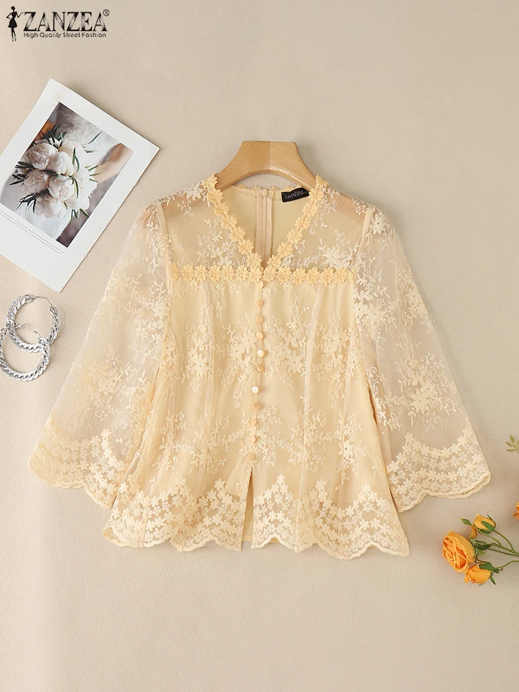 Shirts & Blouses - 3/4 Sleeve - Lace |