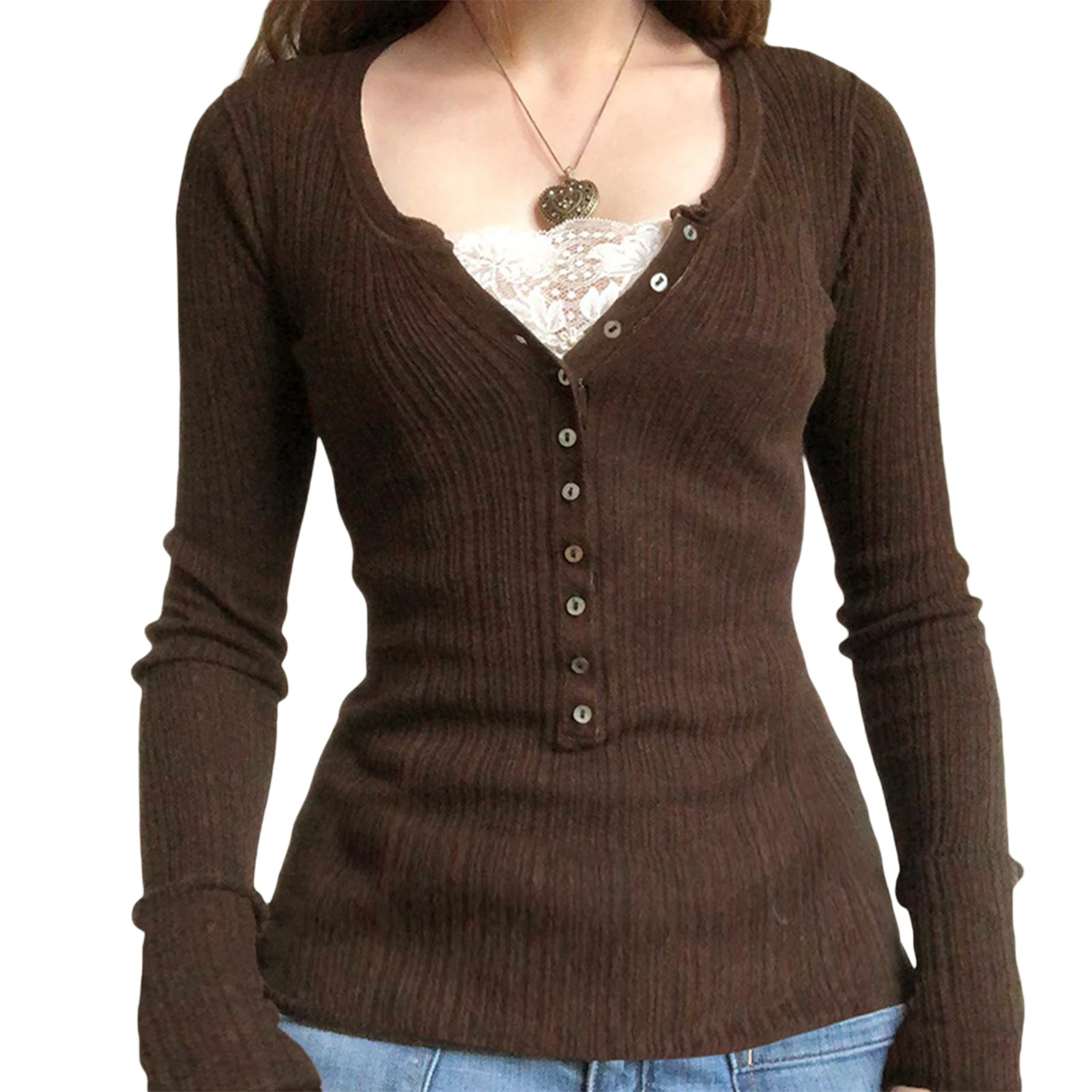 Fairy Grunge T-Shirts for Women Y2K Tops Long Sleeve Lace Patchwork Tees Teen Girls Vintage Slim Knitted Tees Streetwear Clothes  Read more