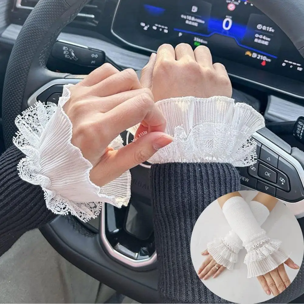 1Pair Women Lace Hollow-Out Sun UV Protection Fingerless Sleeves Thin Mesh Breathable Sleeves Summer Drive Cycling Sleeve Mitten