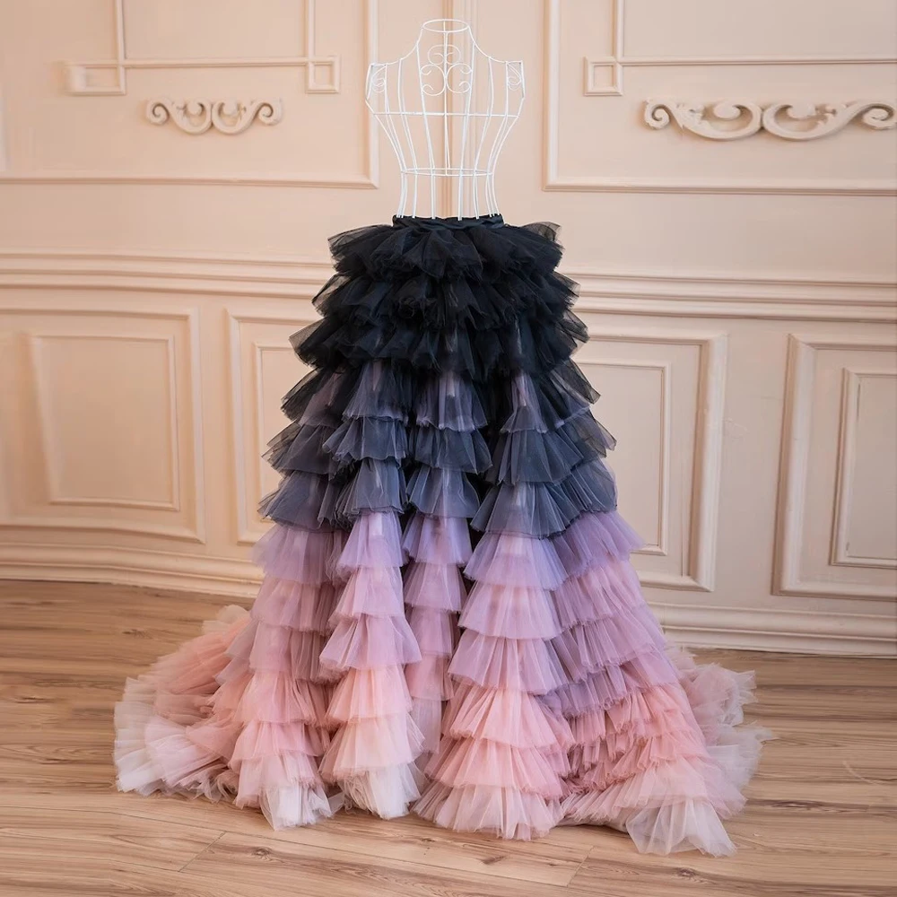 Chic Multi-colors Long Bridal Skirt Separates Ombre Tulle Skirt Couture Gown Tulle Tiered Wedding Photoshoot Skirt Custom Made