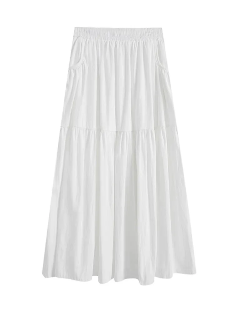 White Versatile High Waist Draped Work Skirt Women's Autumn New Small Size ket f Skirt A-Line Midi Skirt