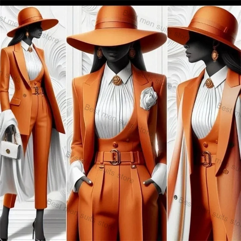 High Quality Cotton Women Suit Set 2 Piece Blazer+Trousers Formal Office Lady Customized Tiered Trousers Prom Coat Jacket