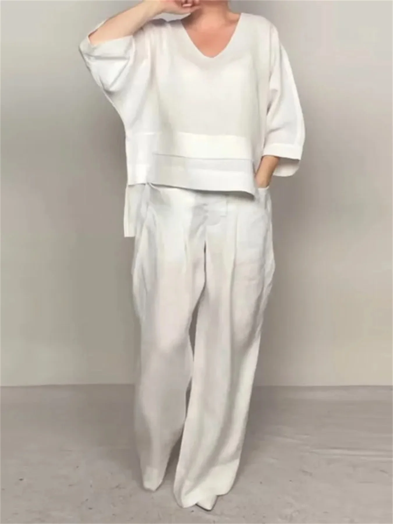 2025 cross-border explosive women's fashion casual solid color plus size irregular linen and cotton suit for women