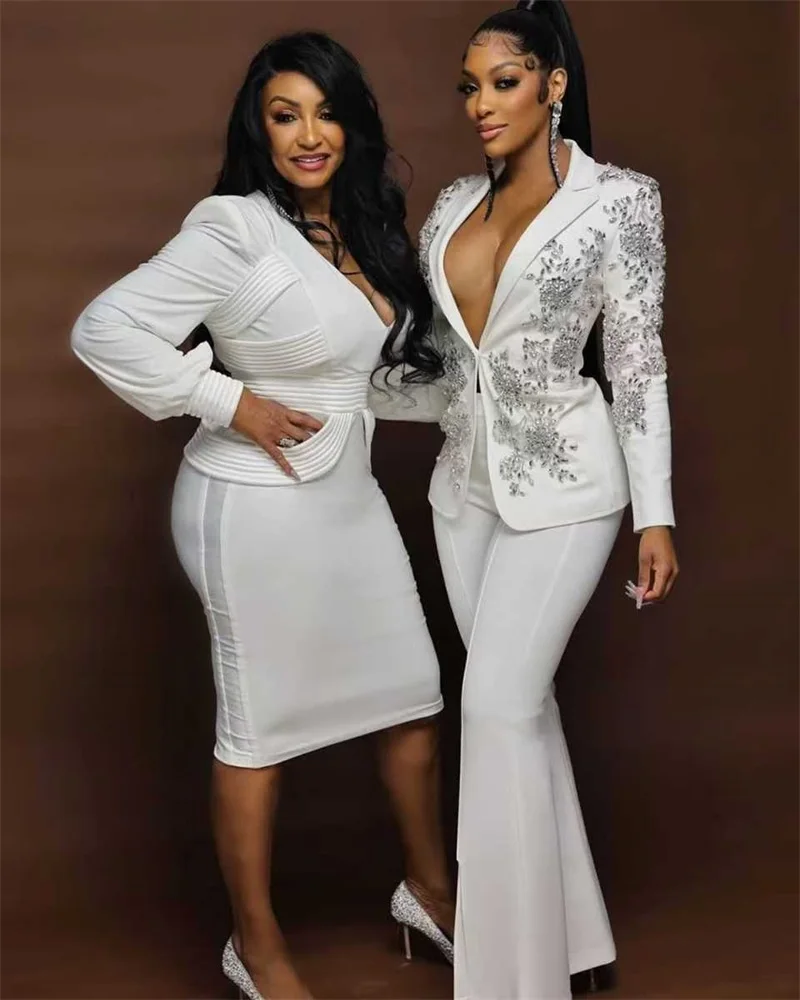 White Pearls Women Suit Set 2 Piece Blazer+Pants Trousers Elegant Formal Office Jacket Customized Wedding Tuxedos Spring Coat