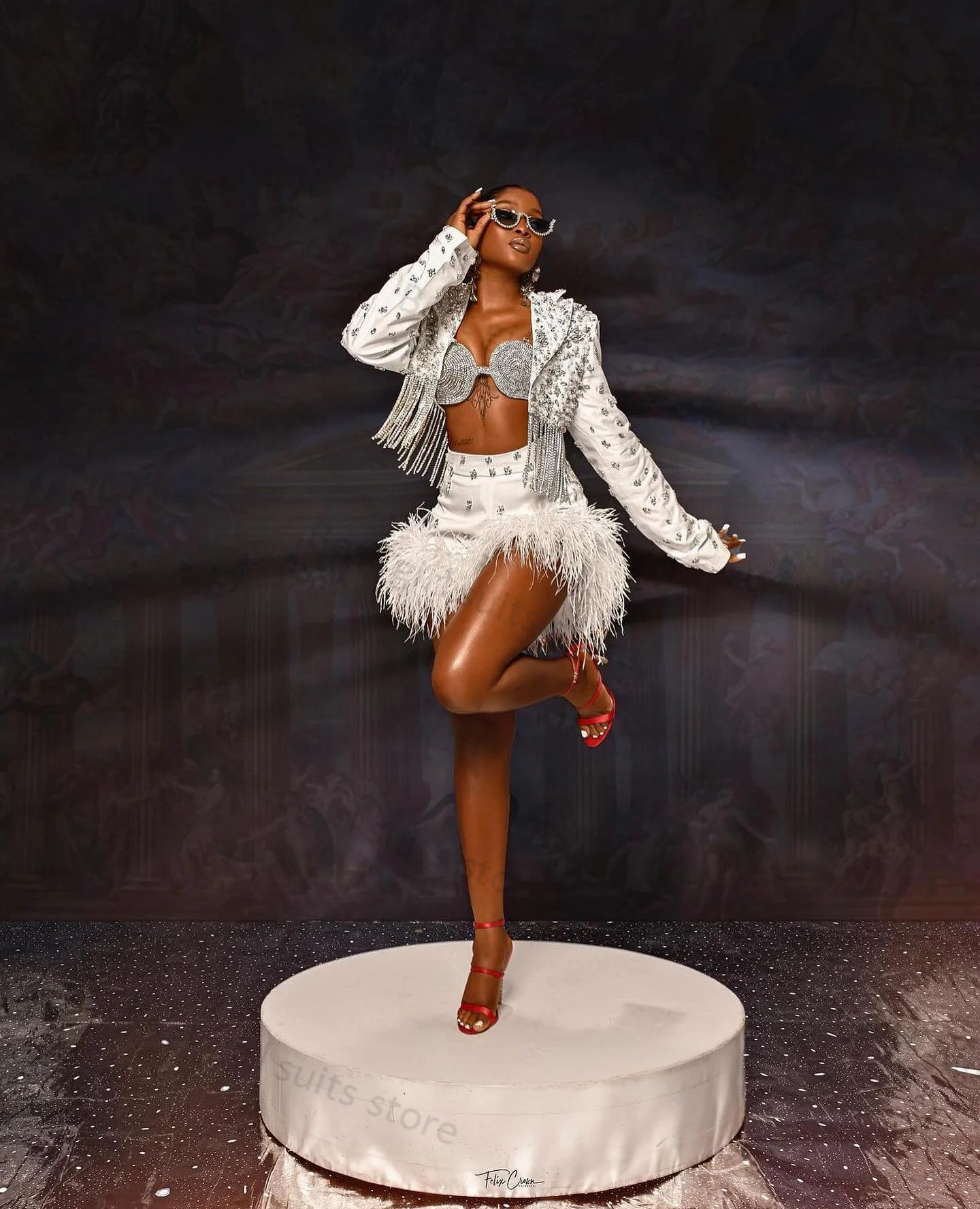Crystals White Women Suit Pantskirt Set Blazer+Short Pants 2 Pieces Ostrich Feather Wedding Tuxedos Custom Made Formal Jacket