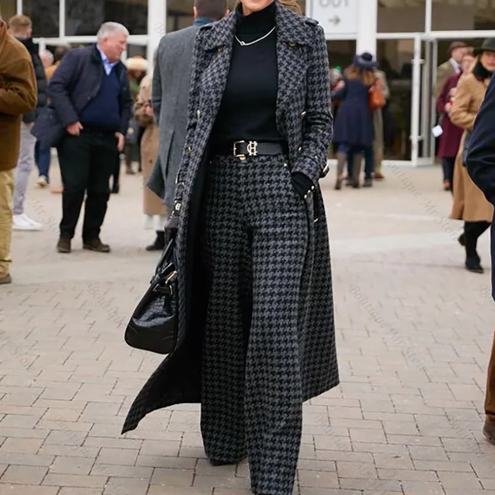 Chic Houndstooth Women Suits 3 Piece & Only Jacket Peak Lapel Formal Casual Prom Party Pants Sets Long Coat Blazer Pants
