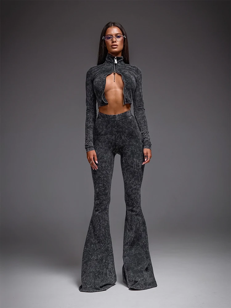 Zipper Suits Casual CNYISHE Women Sets Long Sleeve Turn-down Collar Streetwear Sexy Club Slim Fashion Female 2-pieces(Tops+Pants