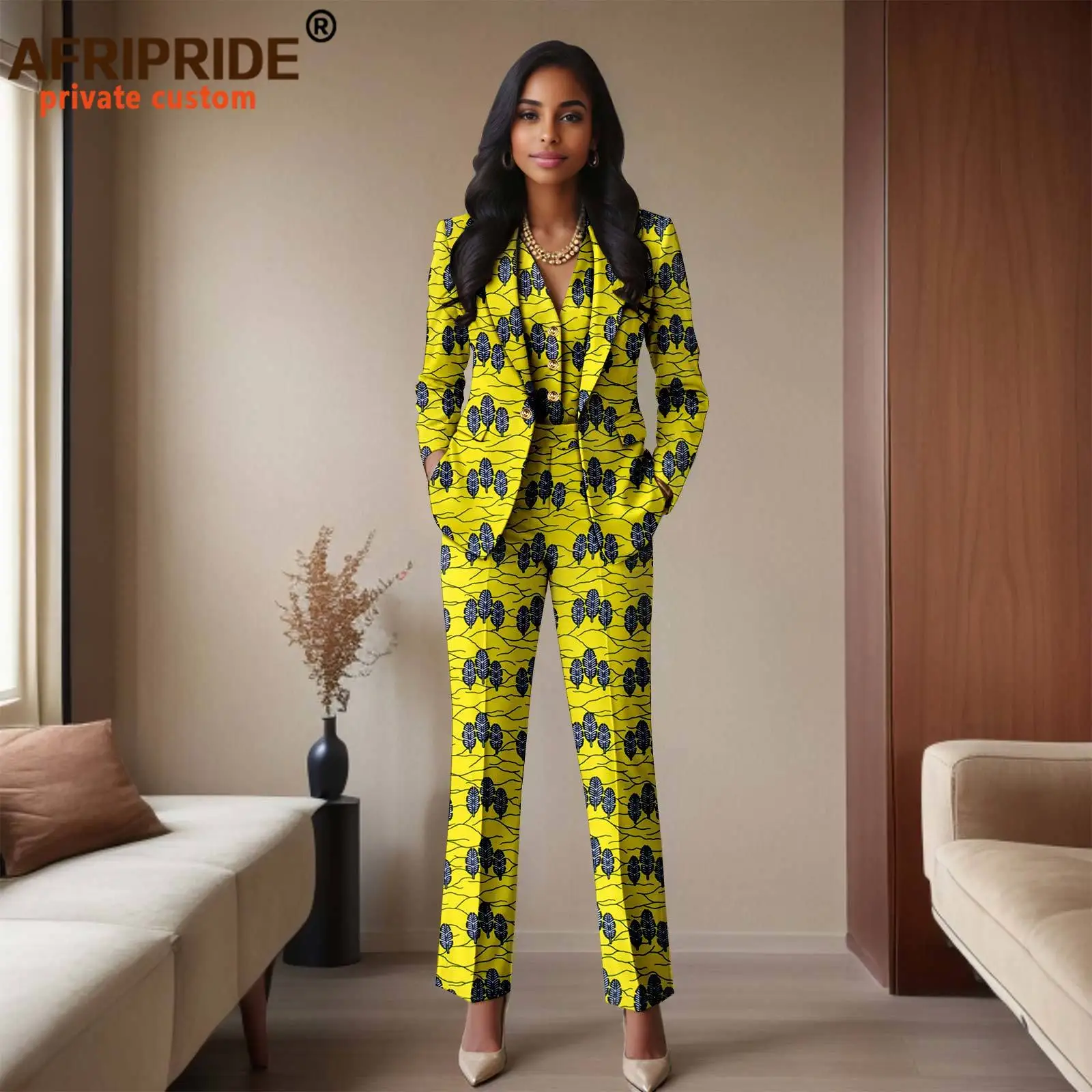 African Clothes for Women Single Breasted Blazer Vest and High Waist Pants 3 Piece Set Ankara Attire Print Outfits 2526008