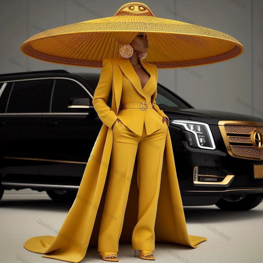 Long Wedding Women Pants Suit Set 2 Piece Blazer With Long Wrap+Trousers Jacket Coat Fomal Office Lady Customized Prom Dress