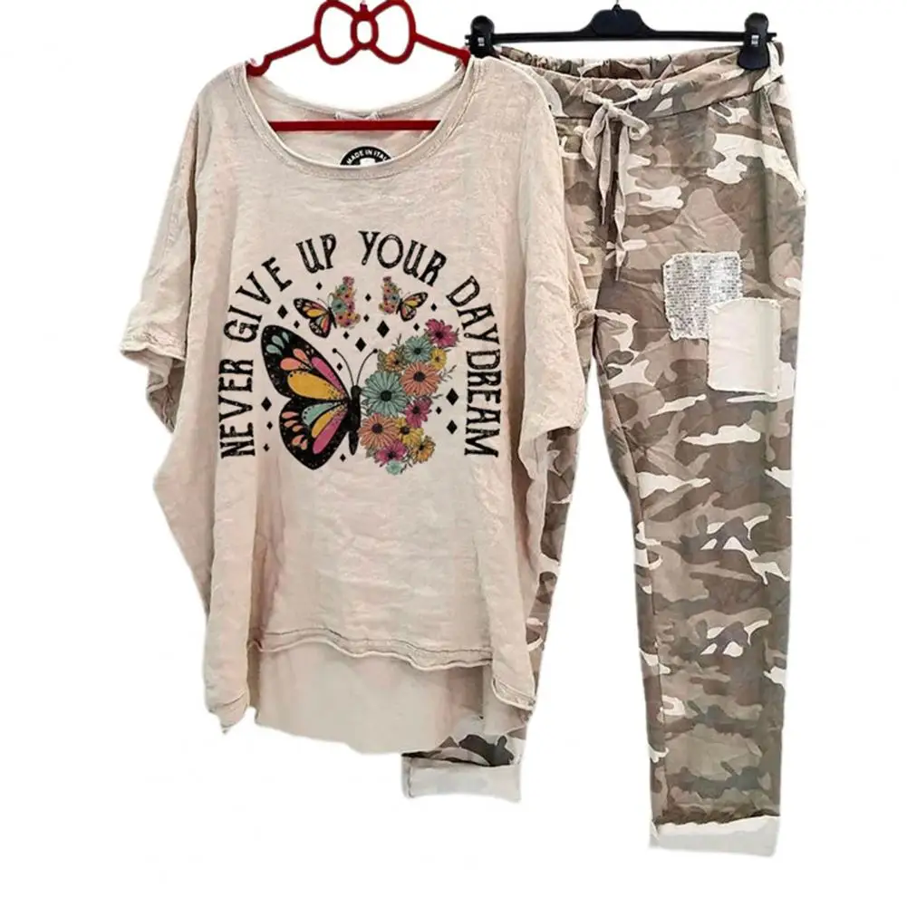 Women's Cotton Blend Suit Women's Summer Casual Printed Sportswear Set Lightweight Cotton Blend Outfit for Fashionable