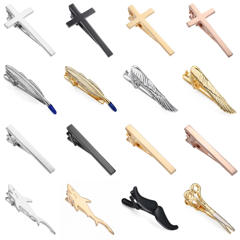 Classic men's and women's tie clip high-quality metal drawing Feather Cross clip business suit shirt accessories jewelry gifts  Read more
