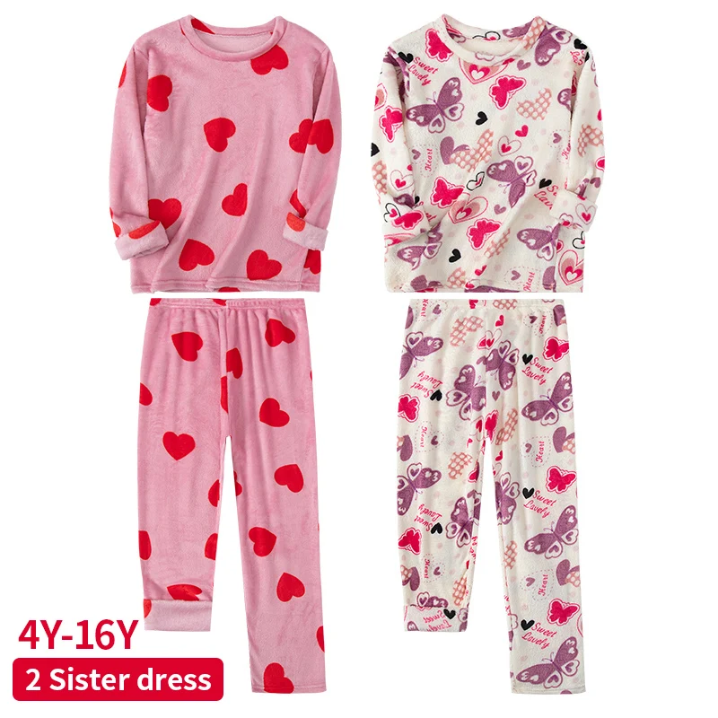 2-Piece Sisters Long-sleeved Trousers Suit girl Sweet And Lovely Home Clothes Teenagers Casual Round Neck Shirt Elastic Waist Pa