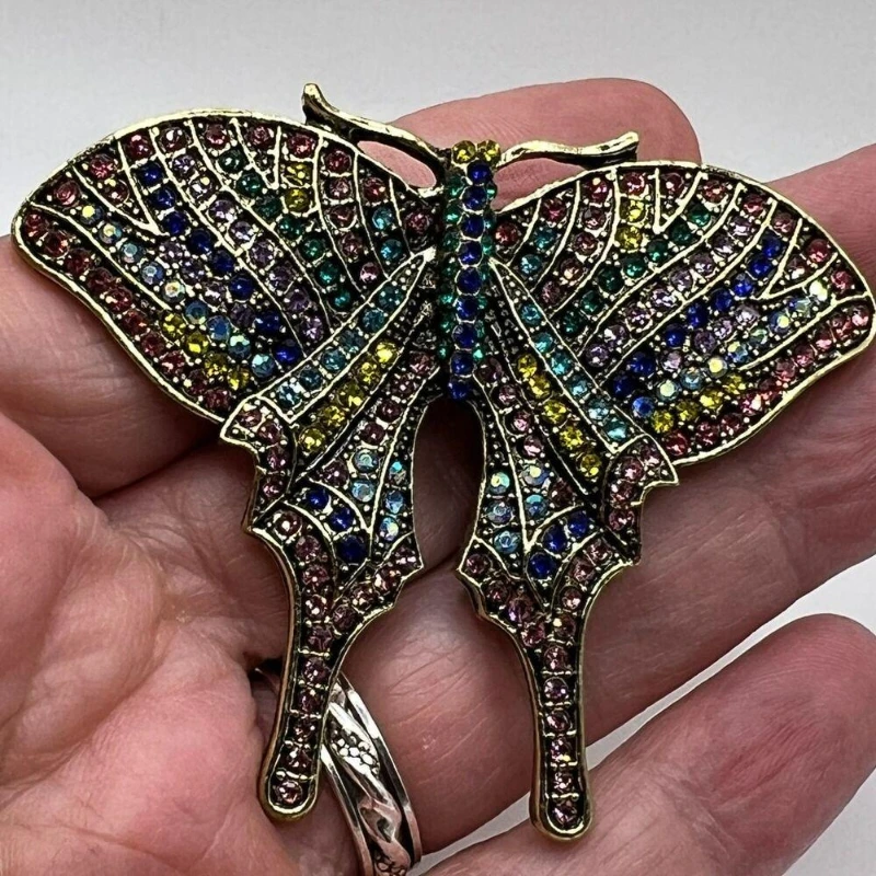 European And American Retro Palace Colorful Rhinestone Studded Butterfly Brooch Suit Coat Clothing Brooch Corsage Accessories  Read more